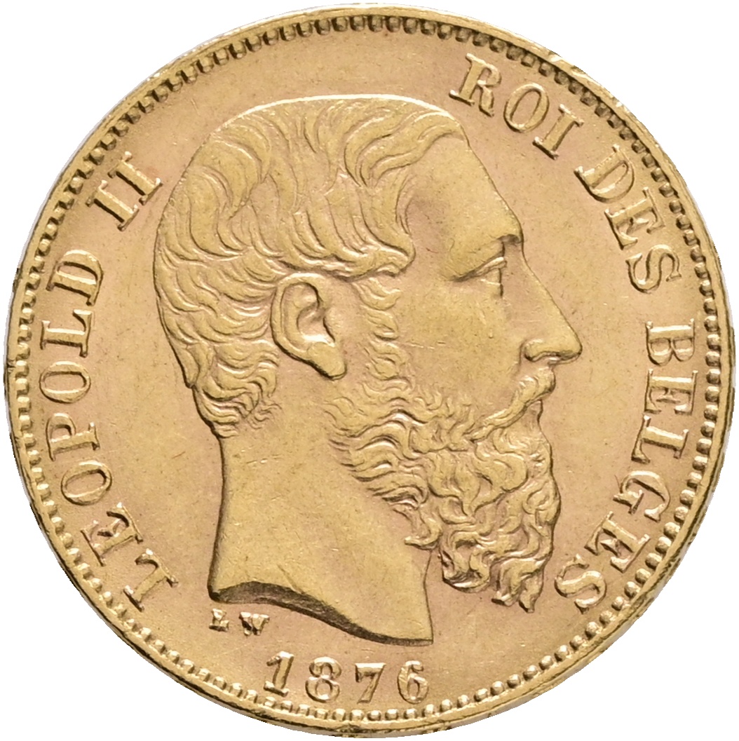 Belgie Zlatý 20 Frank 1876 Leopold II. 2262025 raženo Brusel