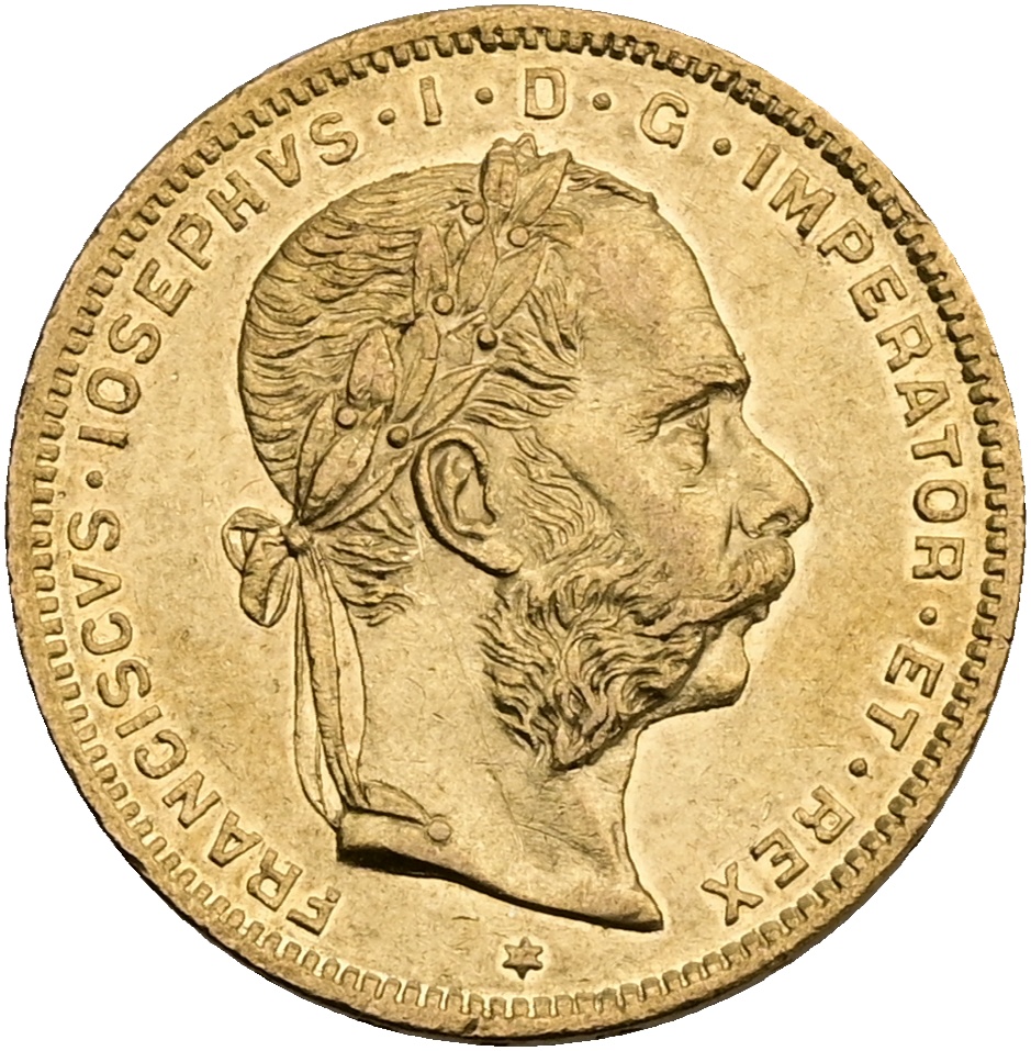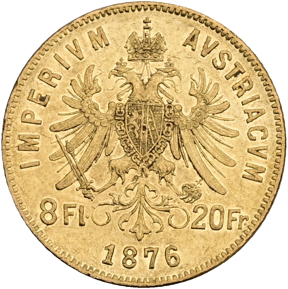 FJI. Zlatý 8 zlatník/20 frank 1876 rakouský Vídeň 2372026