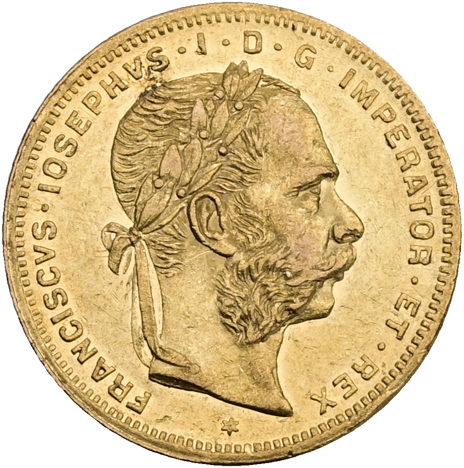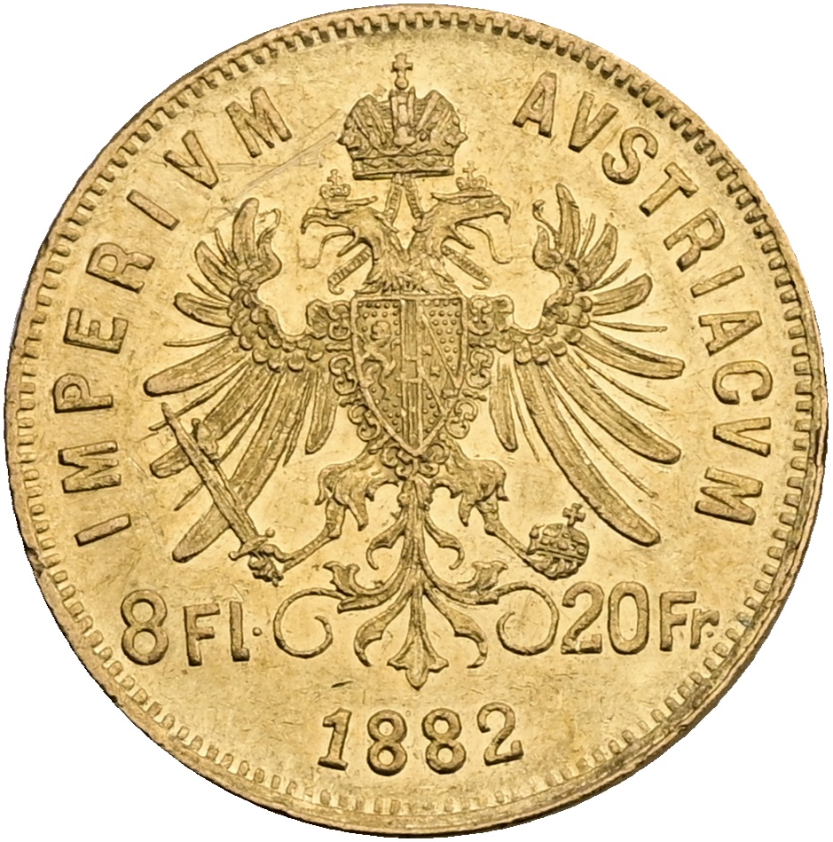 FJI. Zlatý 8 zlatník/20 frank 1882 rakouský Vídeň 2376026