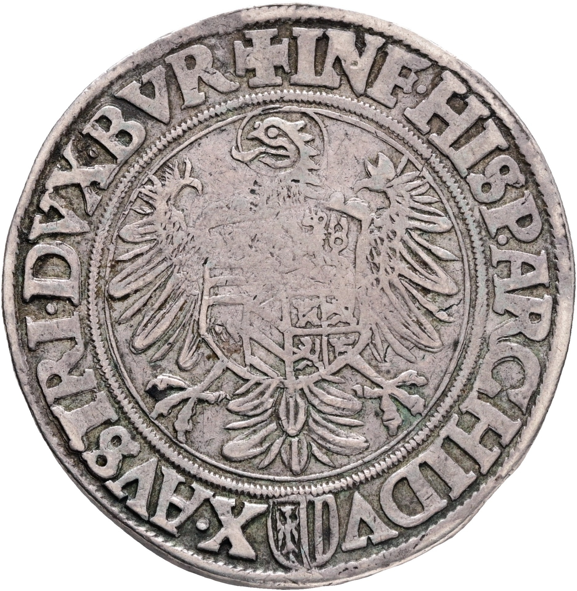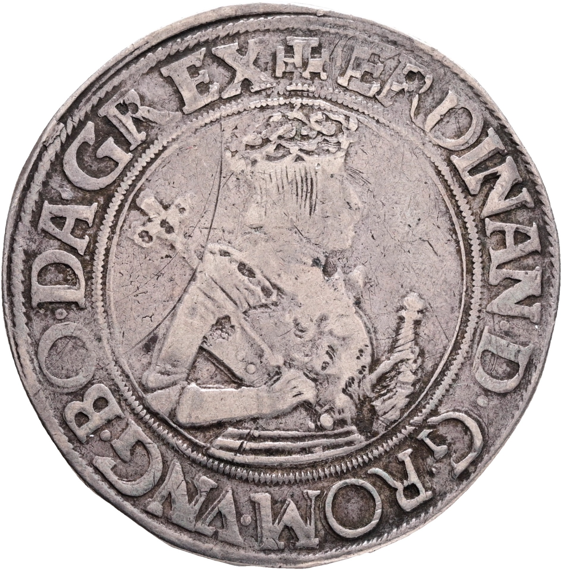 variant hilt to lower D, avers: a cross above the crown , + FERDINAND.D.G.ROM.VNG.BOE.DAL.CROETC.RE revers:+INF.HISPA.ARCHIDV X.AVSTRIE.DVX.BVR