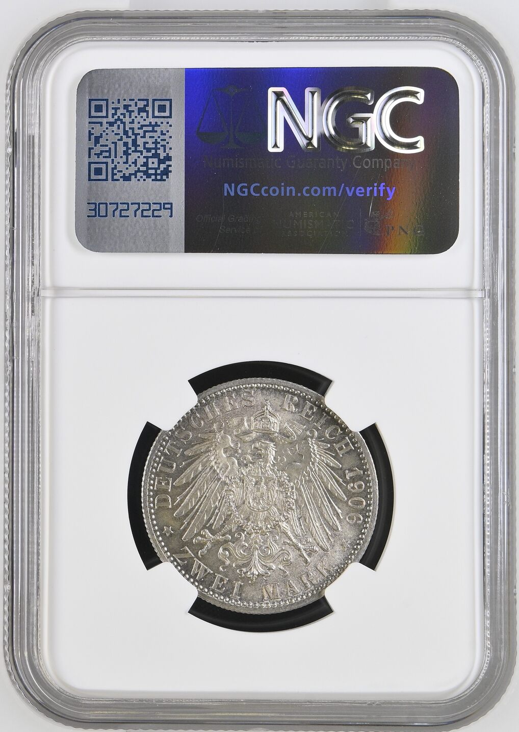 Německo Baden 2 Marka 1906 Karlsruhe 50let svatbyFRIDRICH I. a Luisa J#34 2017025 NGC MS64!!
